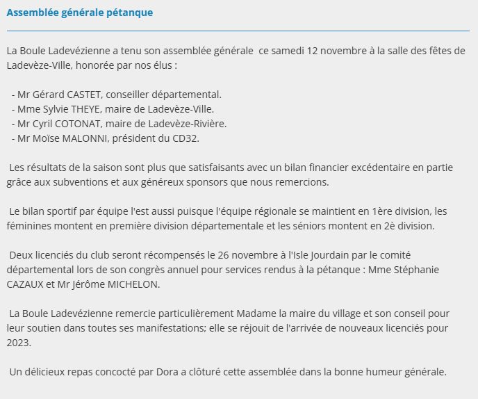 ASSEMBLÉE GÉNÉRALE DE LA PÉTANQUE